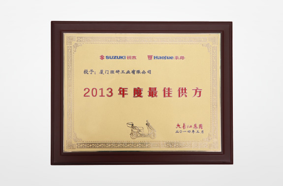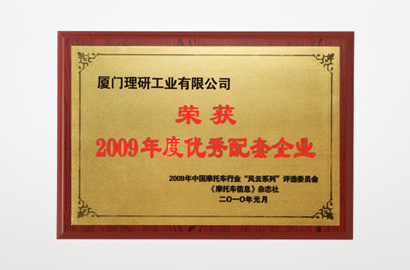 Excellent Supporting Supplier of 2009 Awarded by China Motorcycle Industry "Fengyun Series" Selection Committee of "Motorcycle Information" Magazine Office