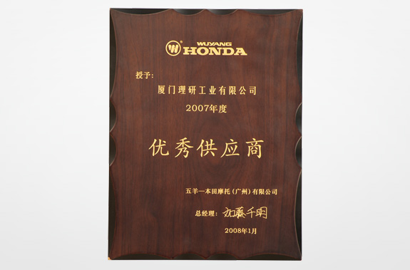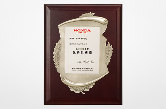 Excellent Supporting Supplier of 2009 Awarded by China Motorcycle Industry "Fengyun Series" Selection Committee of "Motorcycle Information" Magazine Office