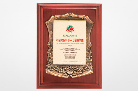 Top Ten International Brand in Auto Parts Industry in China of 2008 Awarded by the Organizing Committee of China Auto Parts Industry Awards